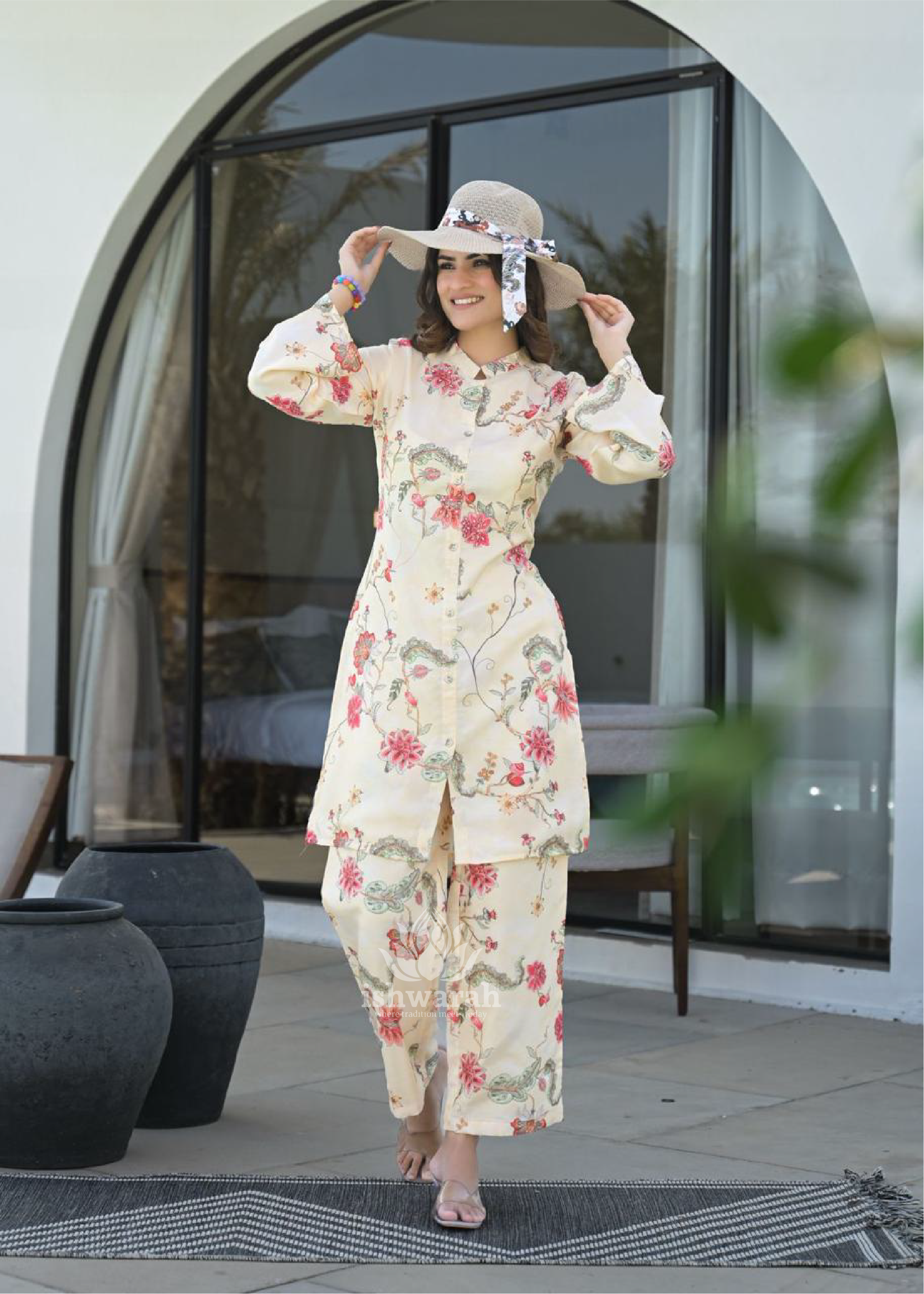 | Varnika – Cotton Silk Co-ord Set in Cream Beige |