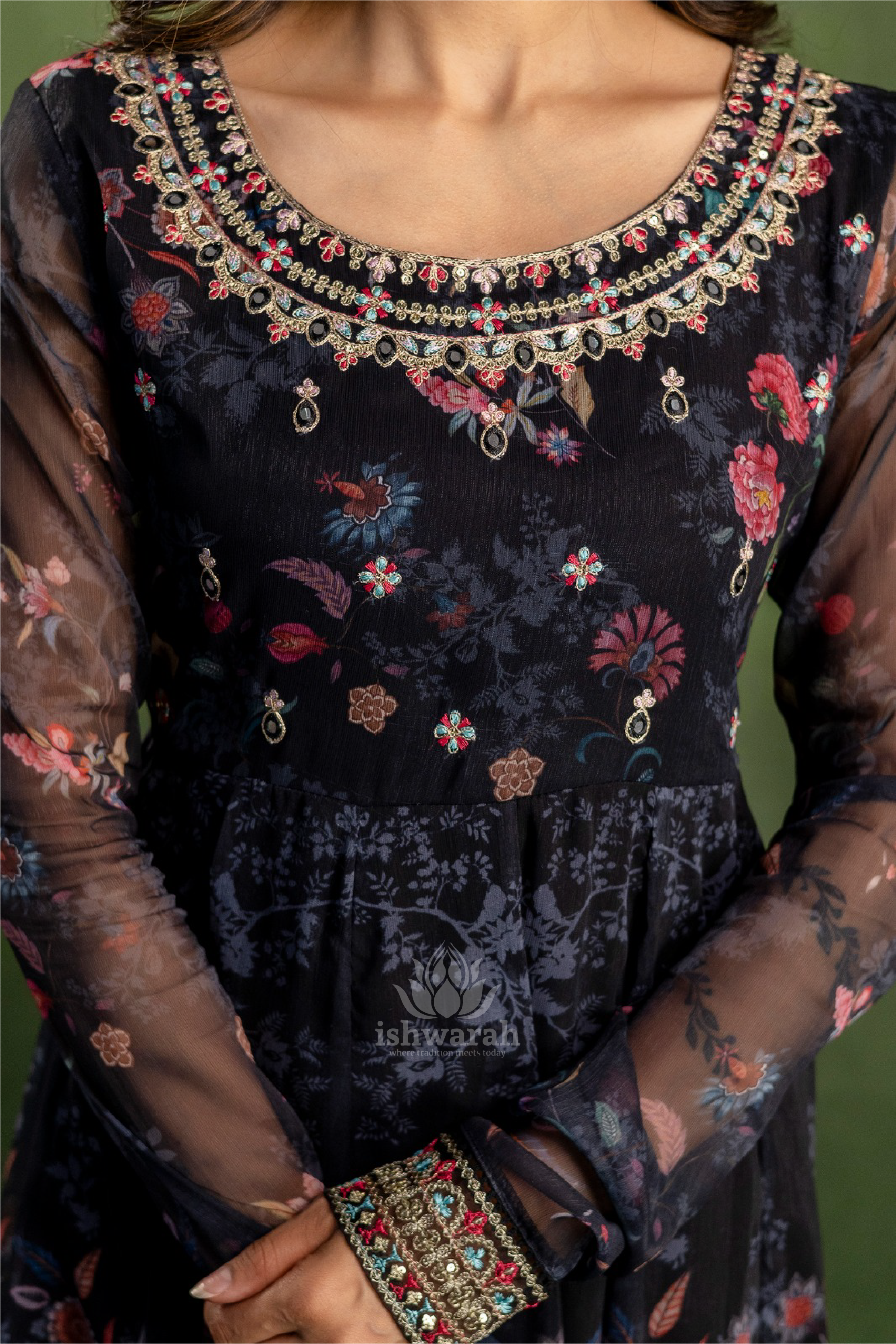| Raag Shyaamal – Heavy Shimmer Anarkali with Embroidered Detailing |