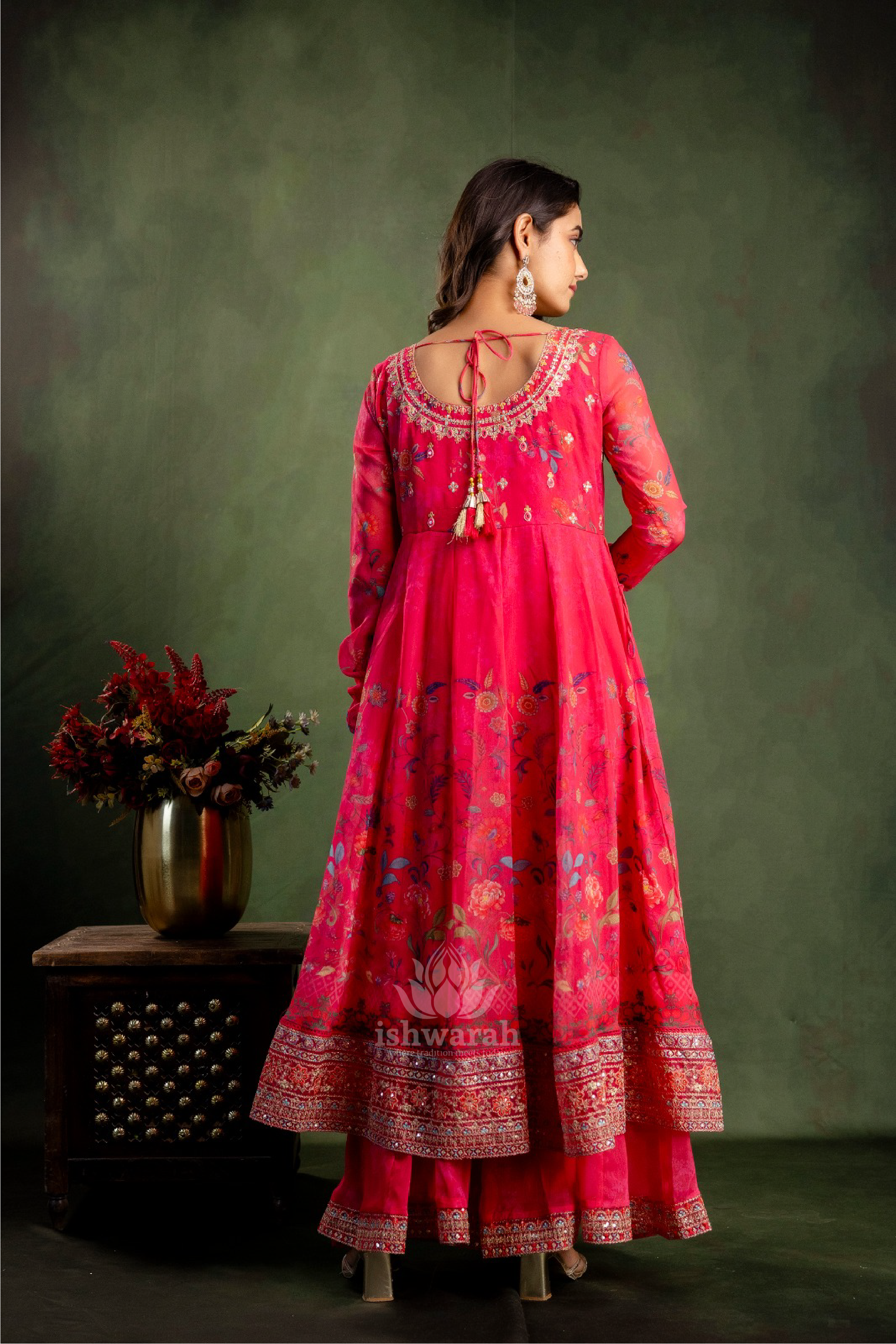 | Raag Gulabgaatha – Shimmer Anarkali with Floral Motifs & Embroidered Detailing |